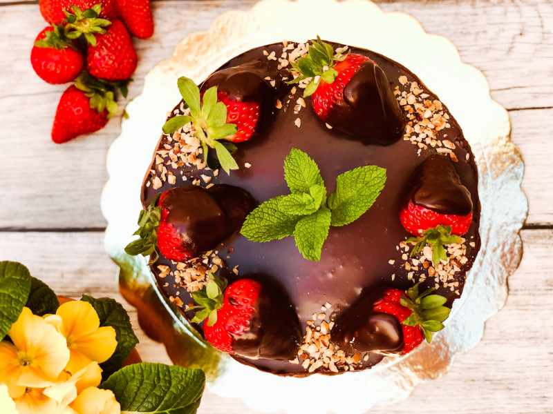 Torta per la festa della mamma al cioccolato e fragole senza cottura